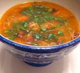 C’est une spécialité de la cuisine maghrébine, dégustée surtout en cette période de Ramadan. Il s’agit d’une soupe consistante et savoureuse qui se prépare avec de la viande d'agneau ou du poulet (voire même sans viande),des pommes de terre, des courgettes, des carottes, céleri, oignons ,de la tomate fraîche et en conserve et des pois chiche, cannelle, sel, poivre noir, poivre rouge. Certains y mettent aussi des navets. Contrairement à la Hrira, la Chorba ne contient pas de farine ; les cheveux d'ange (vermicelle) ou L’frik (blé vert) constituent la base de cette soupe, sans oublier bien sûr le bouquet de ‘’Hchich M’katfa’’, plantes aromatiques constituées essentiellement de coriandre et de menthe découpées au-dessus de cette soupe, quelques minutes avant la fin de la cuisson. En fait, chaque région de chacun des 3 pays du Maghreb possède « sa » chorba où elle est partout la base de l'alimentation au courant de ce mois sacré.