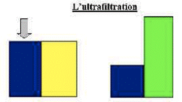 C’est un transfert simultané de solvant et d’une fraction de son contenu en solutés selon un gradient de pression hydrostatique existant de part et d’autre de la membrane ‘pression transmembranaire’. Ceci permet d’obtenir une soustraction nette de liquide, nécessaire chez les patients anuriques et l’élimination concomitante par convection des substances dissoutes.